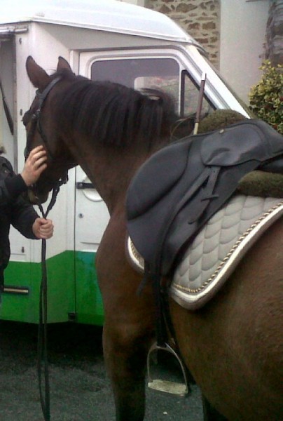 En revenant , je vois Gus sortir de l'écurie selle sur le dos ,prêt à partir en balade ....(WTF????)
