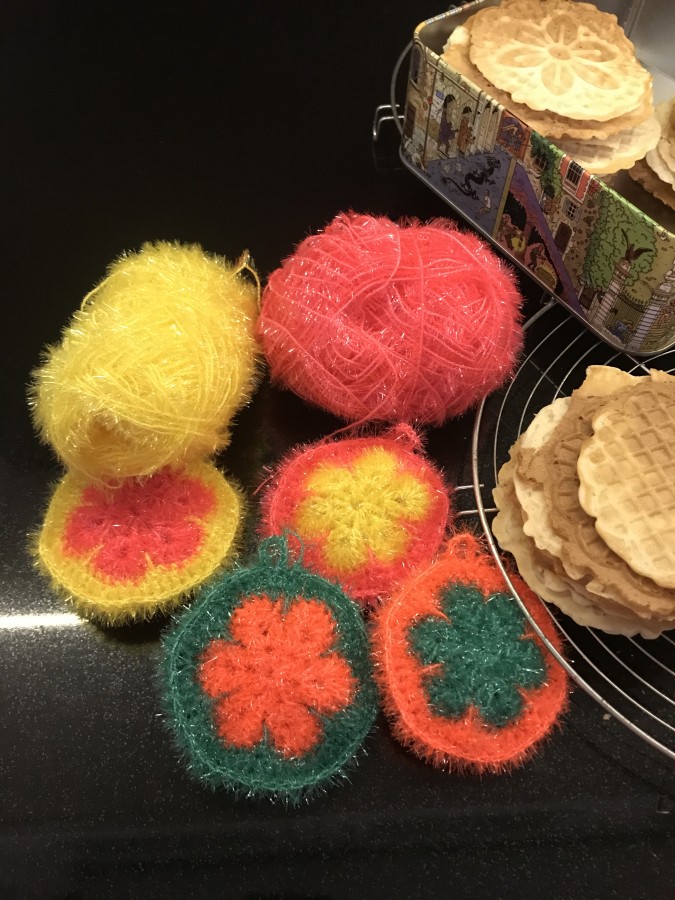 Voilà les pelotes. Et là je fais des bricelets. Les biscuits sont toujours faits maison chez moi , je sais au moins ce qu’il y a dedans.