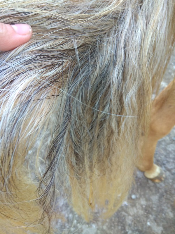 Parce que Graine en avait un peu dans la queue il y a quelques mois, mais ça s'est étendu, et j'ai regardé dans la crinière, pour me rendre compte qu'il commençait à en y en avoir aussi!
