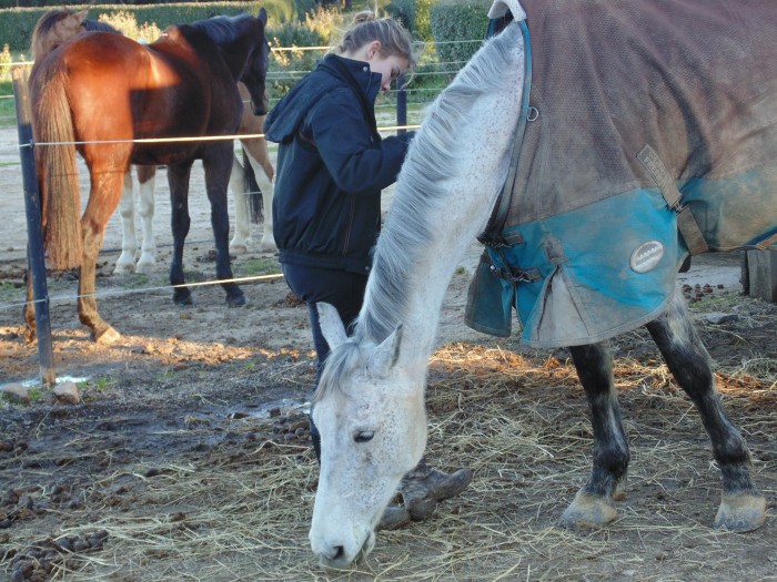 Elle a fait 3 saisons de boxs et de rares sorties paddocks, coupe nickel mais cette année le couvre queue c'est décousu, rien de grave. Et le scratch commence à boursoufler donc je ne le met plus je rabat le devant dans l'autre sens et çà tient sans faire de point de compression au poitrail. Je l'ai acheté 60€ sur Equestrian Clearence, malheureusement il ne l'a font plus et plus jamais vu de telle affaire :(