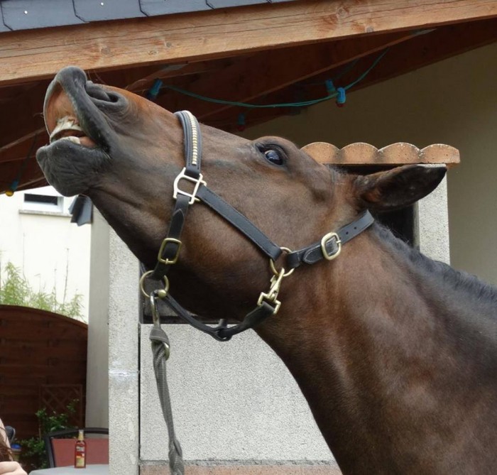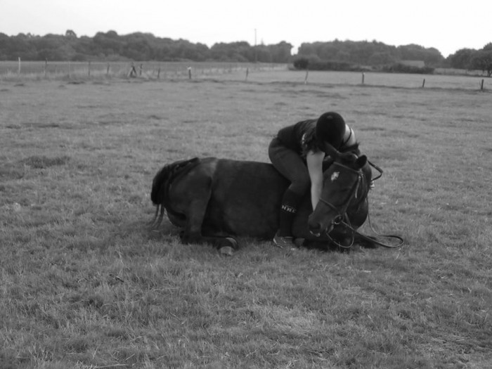 Les deux autres chevaux ou j'ai appris le couché cela s'est passe comme ça. Beaucoup plus de temps que le mien par contre. Un 5 mois l'autre l'autre au bout de 4 mois j'avais que les genoux a terre mais après j'ai changer de pension.