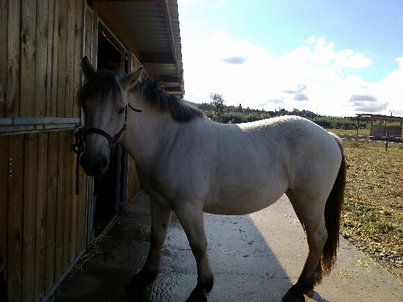Pour le croisement, sa mère serait croisée Fjord et son père, petit cheval de selle costaud d'1m55 environ, dixit le marchand qui connaissait l'élevage (qui a fermé depuis, je n'ai donc jamais pu voir les parents
