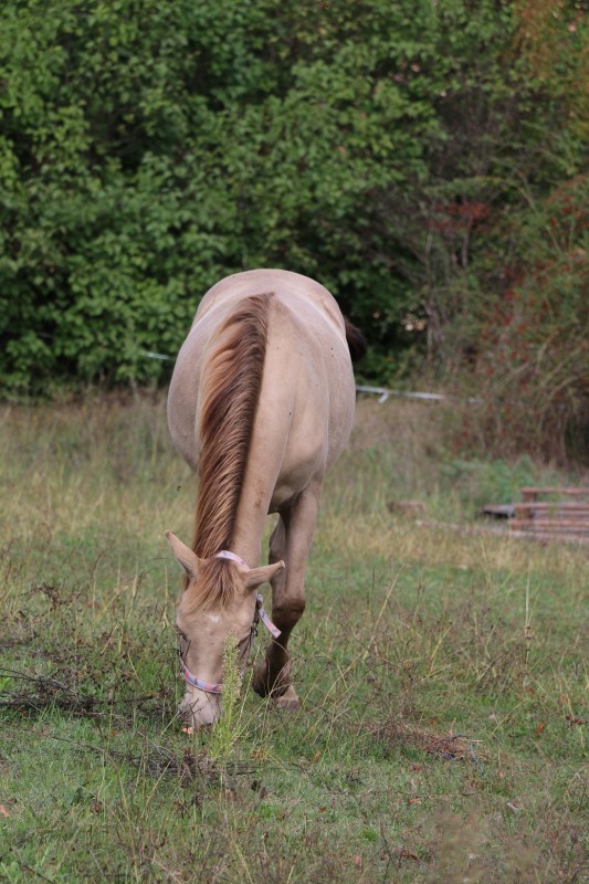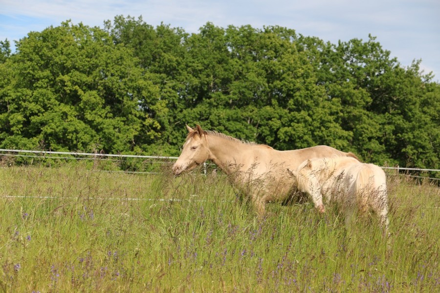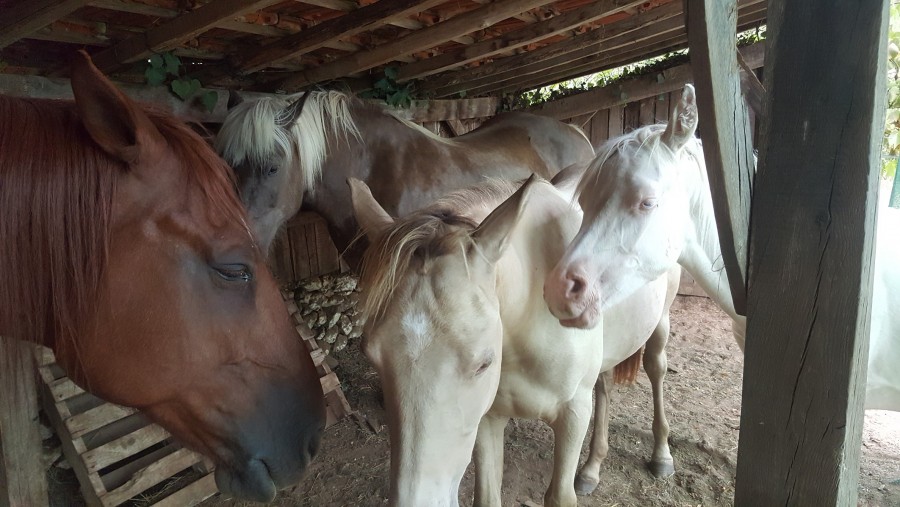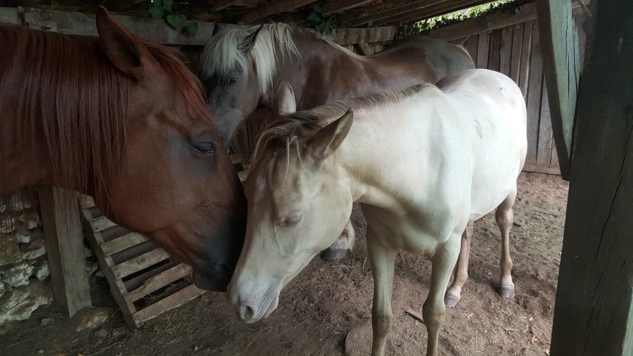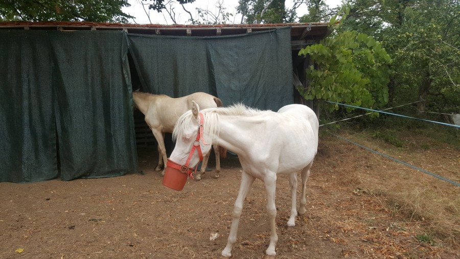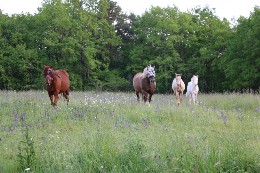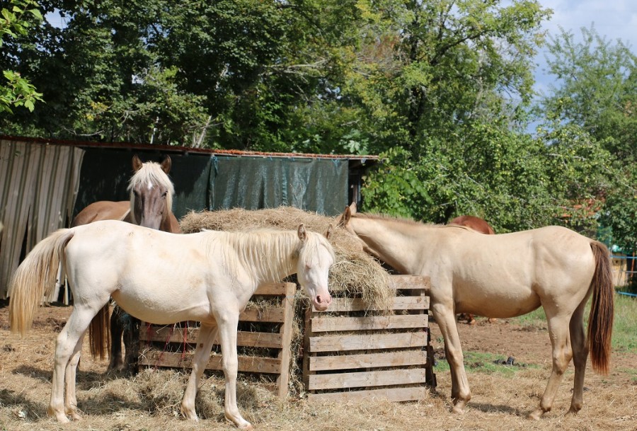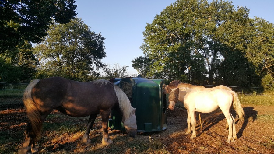 mi-juillet, déjà obligés de mettre du foin... pour les pouliches, les grands sont gras comme des loukoums.