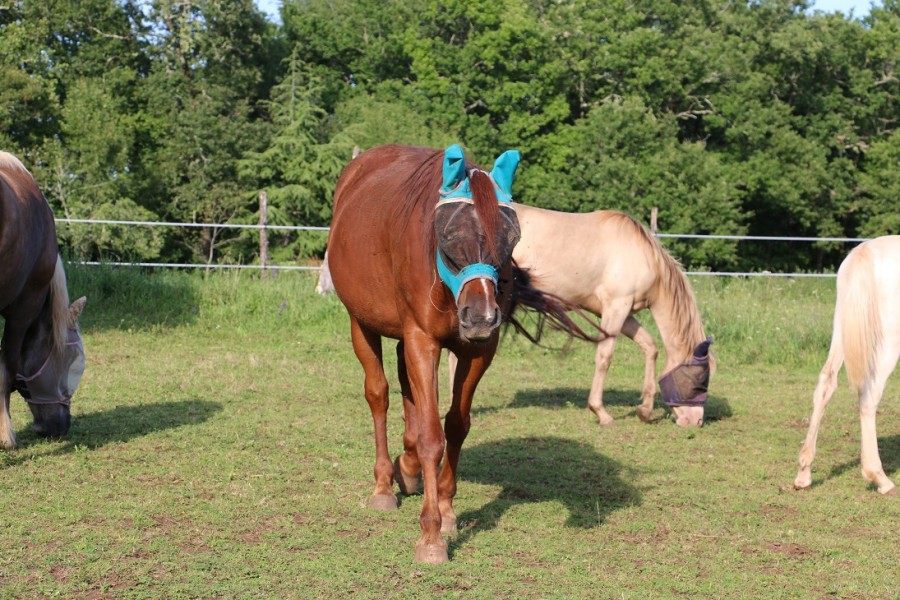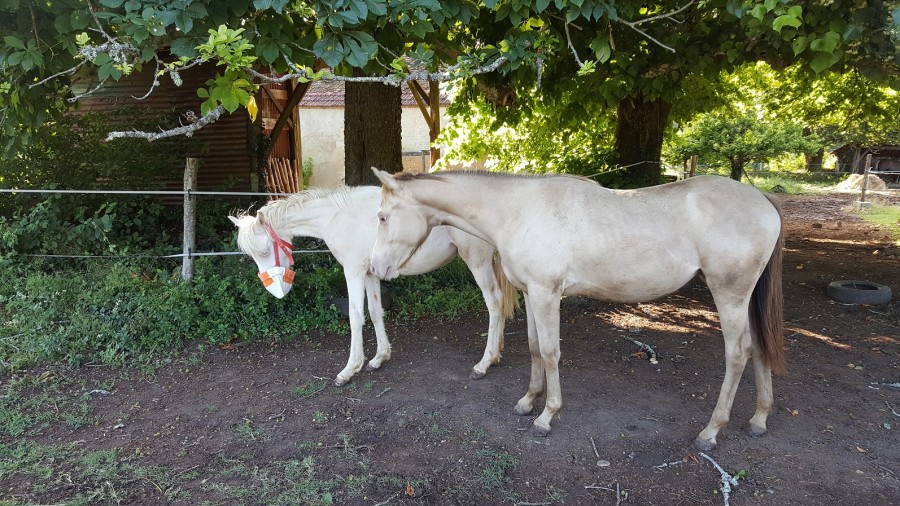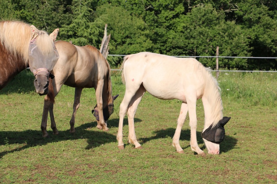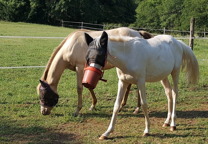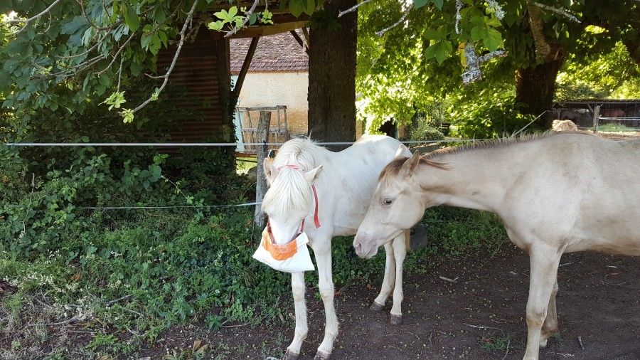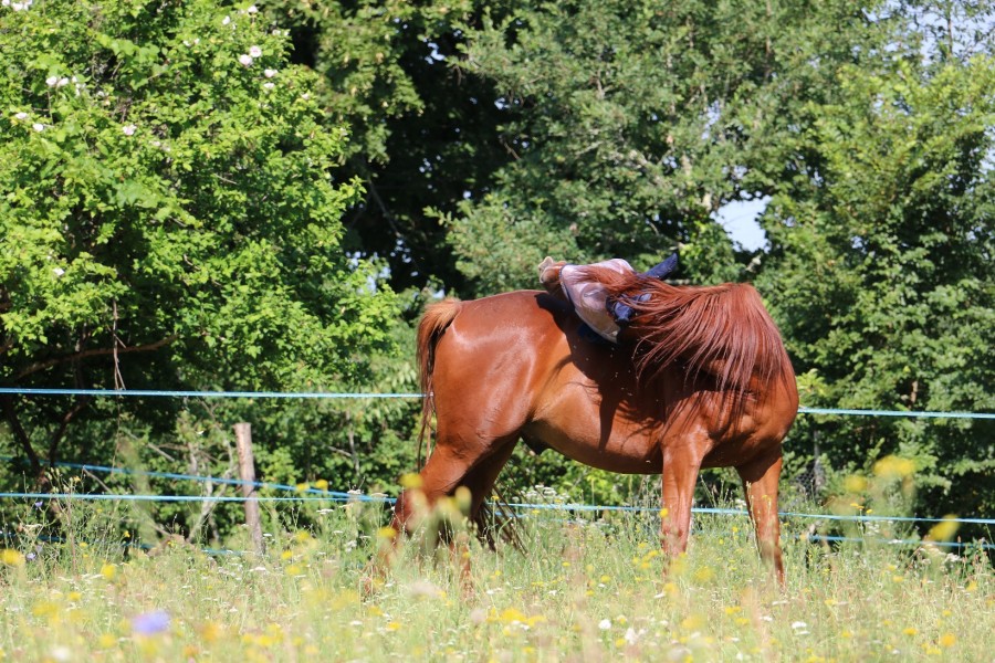 Ah, ces taons... voyons le bon côté, ils obligent à un minimum d'exercice physique. Velours est gras, il a des stries sur les flancs, et ce ne sont pas ses côtes que l'on voit mais bien des plis de peau