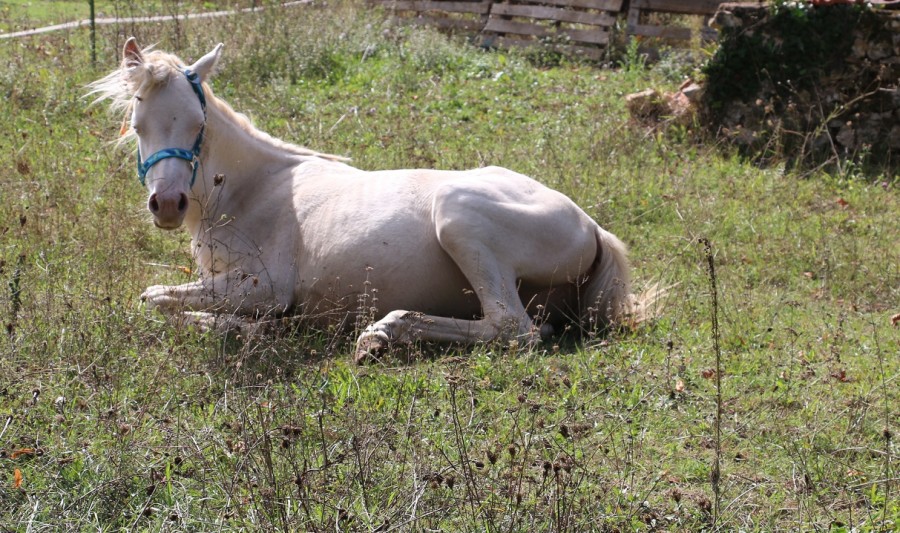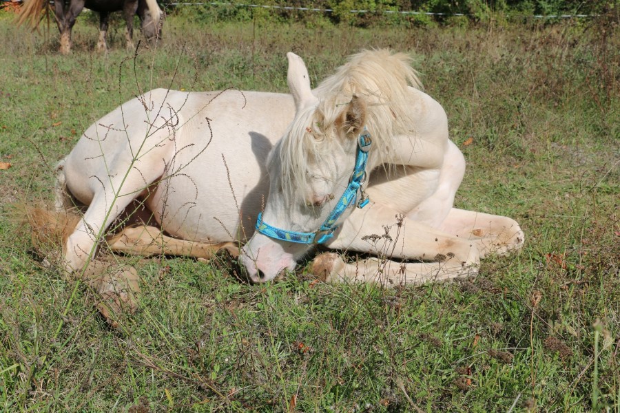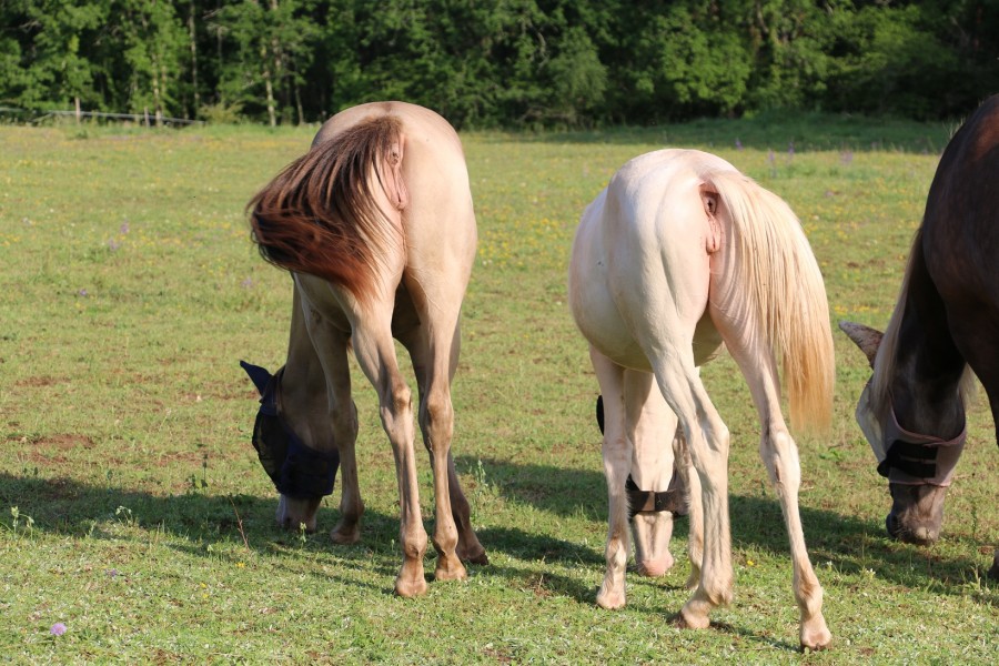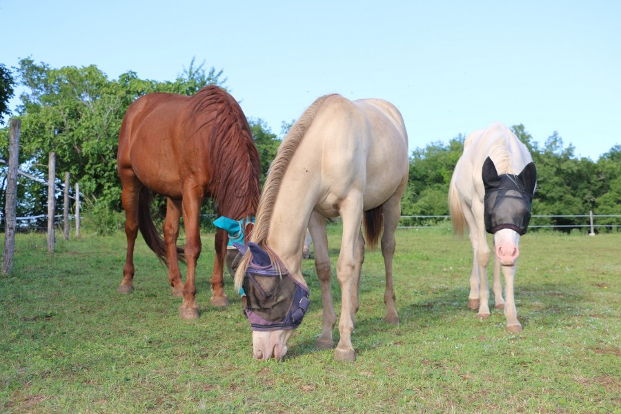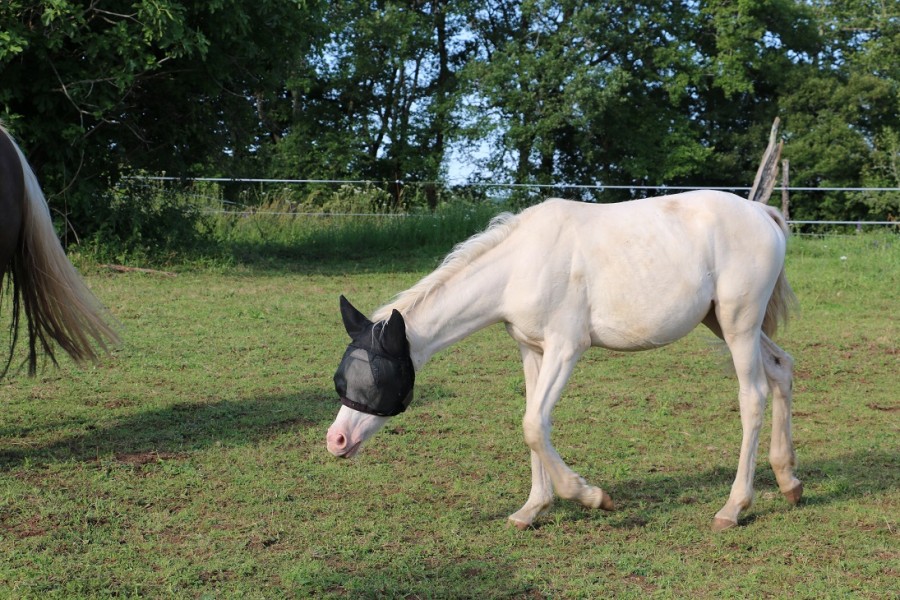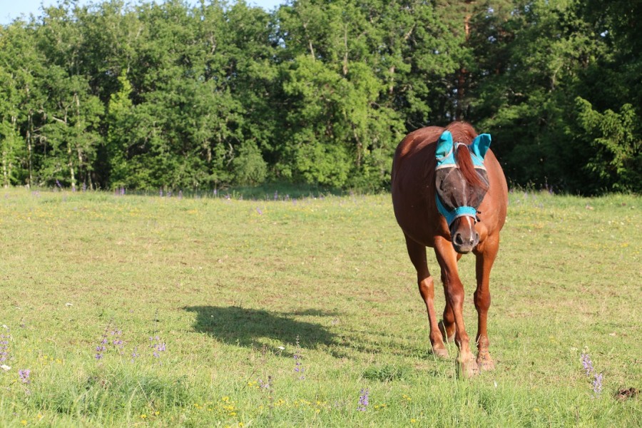 Ah, ces taons... voyons le bon côté, ils obligent à un minimum d'exercice physique. Velours est gras, il a des stries sur les flancs, et ce ne sont pas ses côtes que l'on voit mais bien des plis de peau