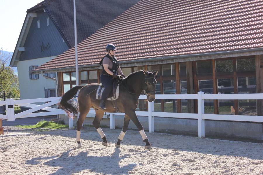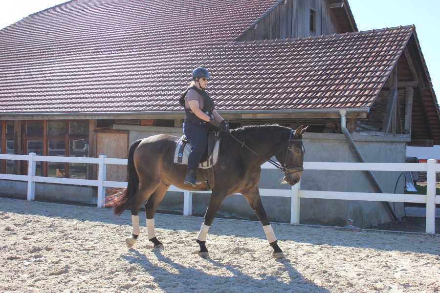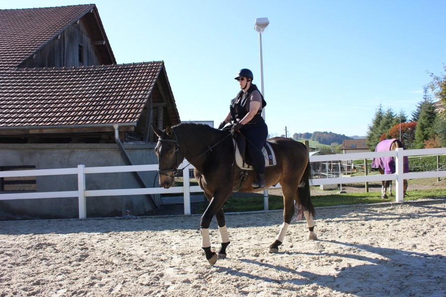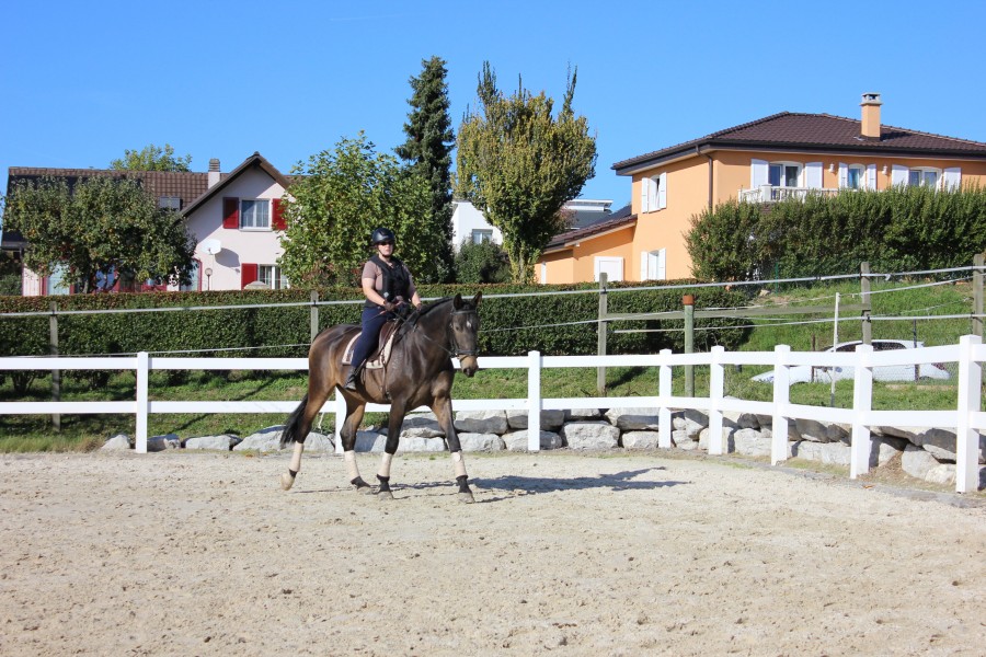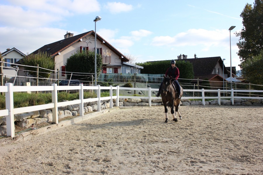 En Suisse, dans le coin où je suis, des pensions au pré, rien ne me convient. Soit pas assez de terrain, soit pas de surveillance, ... je vais devoir faire un choix et je l'ai déjà fait. S'il va en pension au pré, il n'y aura plus d'installation. Ma passion c'est le dressage, mais sa santé passe avant tout.