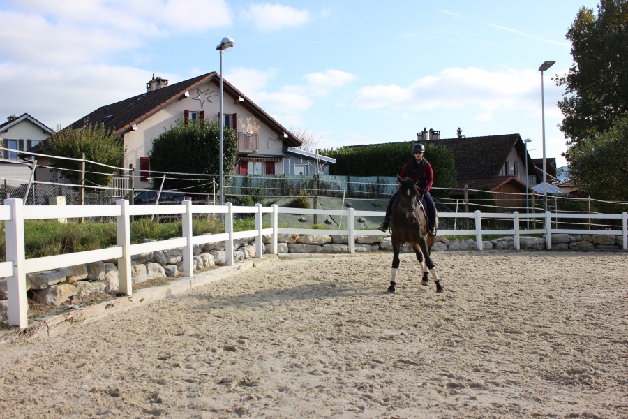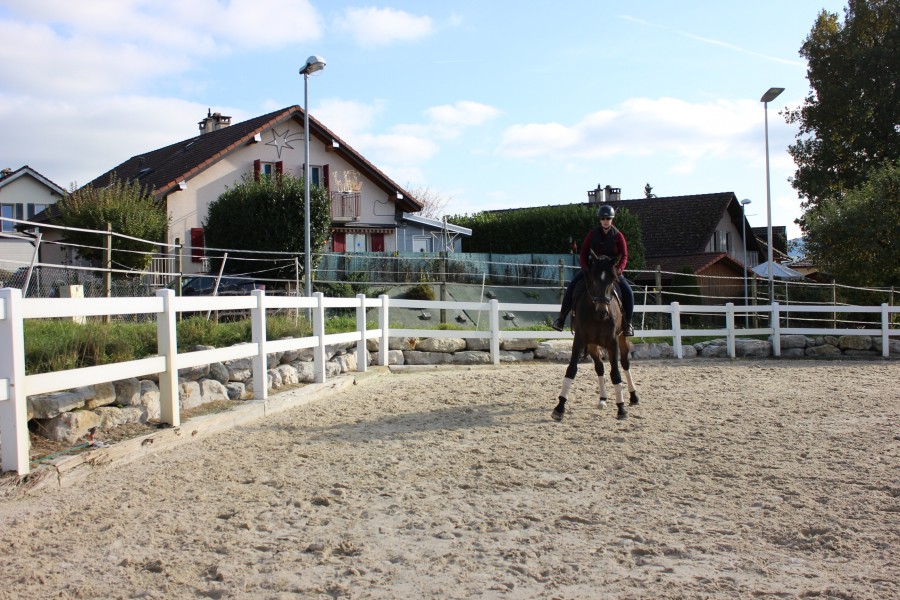 Rien de très organisé, surtout en ce moment avec la météo. Si le terrain le permet c'est soit liberté/longe/monté/travail au sol.