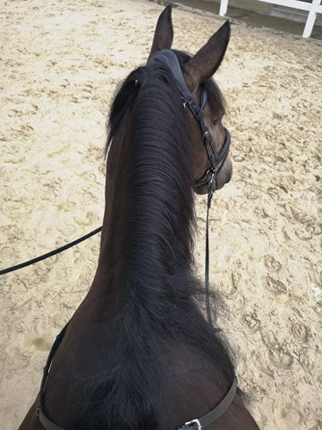 Encore une top séance ! Pas tenue du tout au début. On S est éclater Jenghis et moi. Il était très réactif. Et moi plus demandeuse aussi. Ceci expliquera sûrement cela. Mais vraiment il est brave. J envoie chaque jour ou presque à Karen que ce cheval est un ange tellement il va bien...