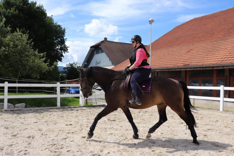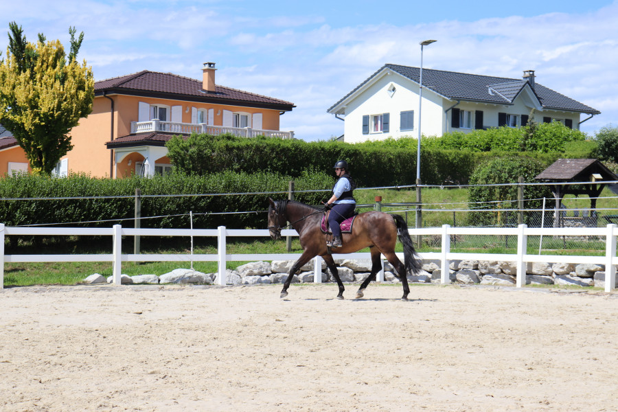 Y a juste à la fin je voulais trotter a droite mais limite rétif... le connaissant pas ainsi je fais juste une épaule en dedans a droite et je descend. Forcément... gros gros pipi ultra urgent. Je comprends mieux.