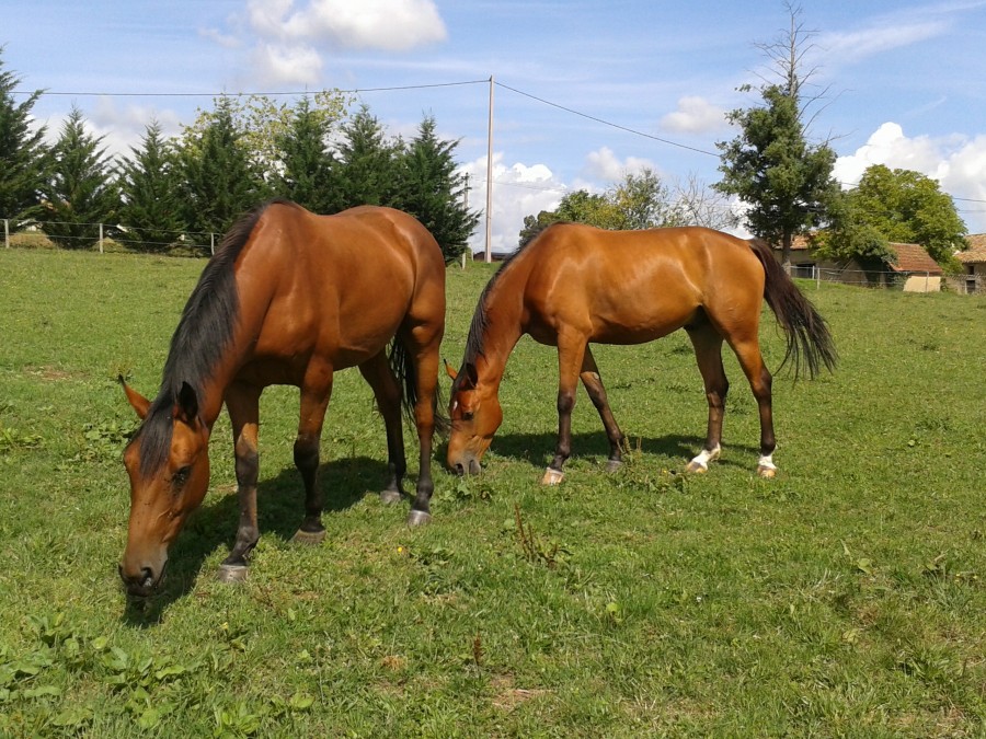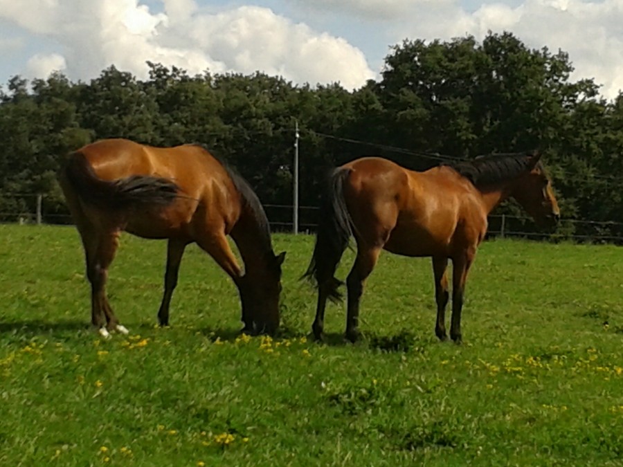 Si c'est le cas, nous aurons 3 chevaux à sortir l'an prochain ! Bosteel passe de bonnes vacances, il est copain comme cochon avec mon autre poulain de 3 ans !