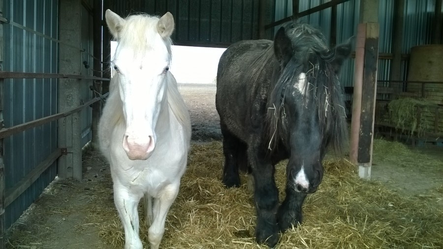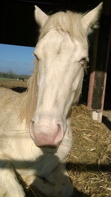 Elle a perdu sa copine en debut d'année, on l'a donc mise avec deux copains, un papy et un percheron de 9 ans. Le papy lui apprend la vie