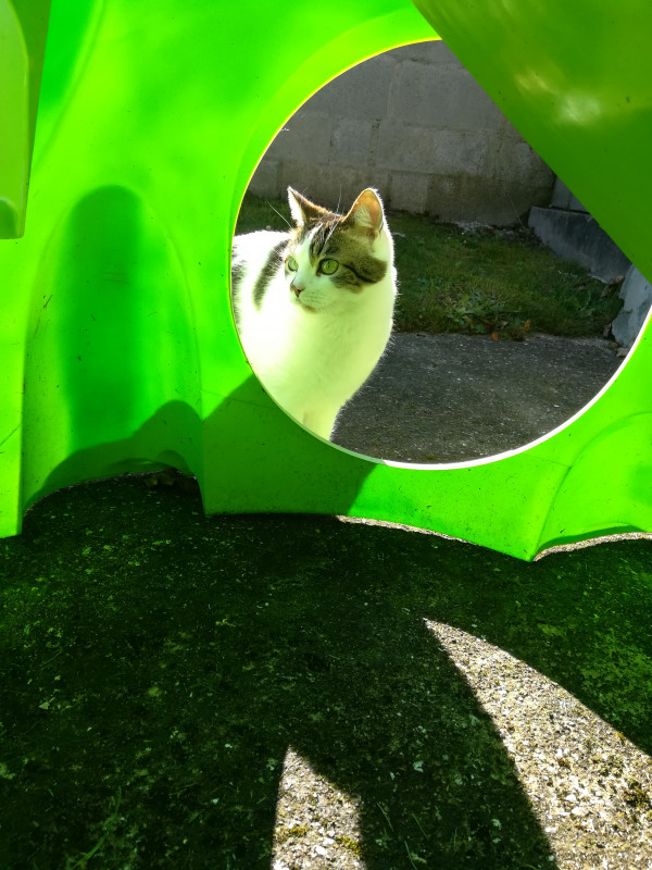 Et en ce moment, on creuse un trou dans le jardin et les chats vont y jouer. Ils se posent la question de savoir ce que c'est. Le pourquoi du comment, je pense qu'ils s'en foutent mais ça change pas mal et c'est un bon terrain de jeu pour le moment... Quand il y aura de l'eau dedans ils feront moins les mâlins !