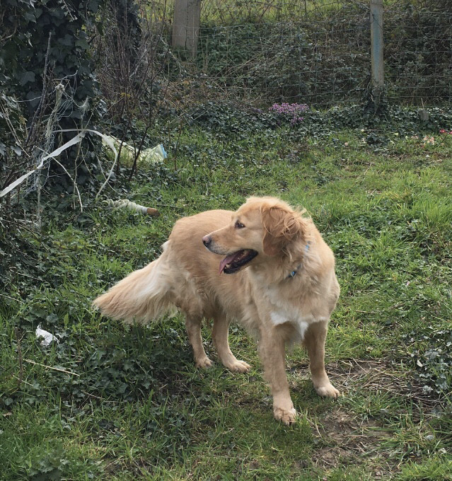 Vénus et Pâquerette nous accompagnent aux chevaux! Vénus marche le long du paddock, regarde, se couche, etc... Pendant que Pâquerette va déjà dans son terrain de jeu : le foin et la paille. On y passe 45min, donc elle y passe autant de temps à jouer, courir, bondir, "chasser". Elle s'amuse même à recouvrir les crottins lorsqu'on fait le ramassage, façon pour elle de nous aider (alors qu'elle ne le fait