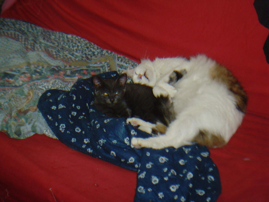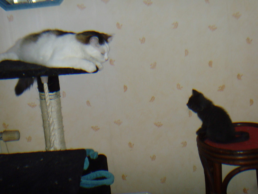 Bref, les premiers jours avec Félix ont été assez "drôles" il feulait de jour et dormait avec la nuit. Accourait quand elle miaulait etc. Elle a appris à faire ces griffes avec lui. A nettoyer les autres qu'elle faisait en mode bof bof (mais apparemment la mère aussi). Elle s'est empiffrée de croquettes le premier jour avant de se rendre compte que c'était à volonté et plus elle vidait, plus on remplissait.