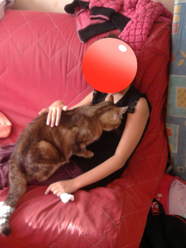 Kheops, décédé à l'âge de 17 ans quand j'étais petite. C'était un superbe chat que ma mère avait nourrit au biberon car sa mère l'avait abandonné. Il pesait 10kg dans son poids de forme. Autrement dit un chat lourd quoi lol.