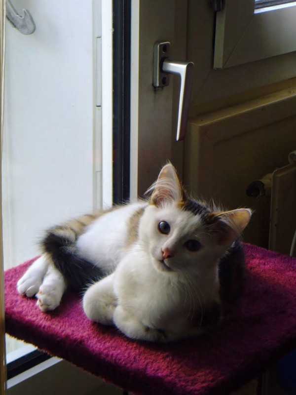 Ensuite la minette! Nala, 5 ans. Elle a grandit avec seulement son frère et sa mère. Les autres ayant été adoptés tôt. Officiellement on l'a adopté à 3 mois. Mais elle me paraît ultra jeune.