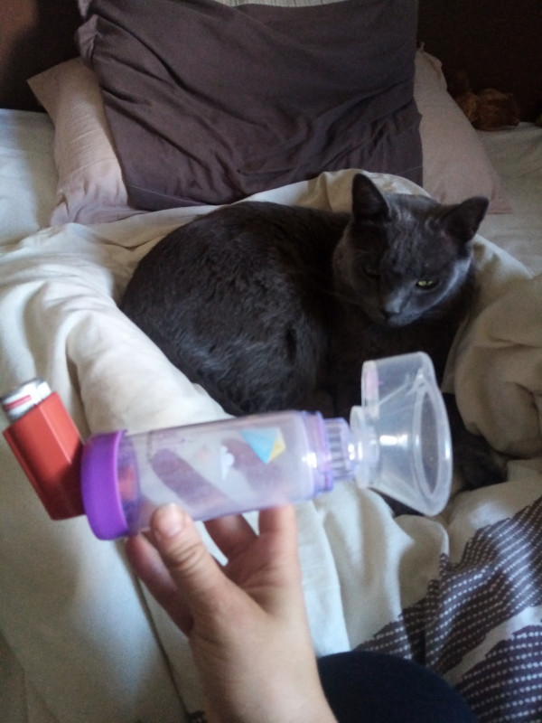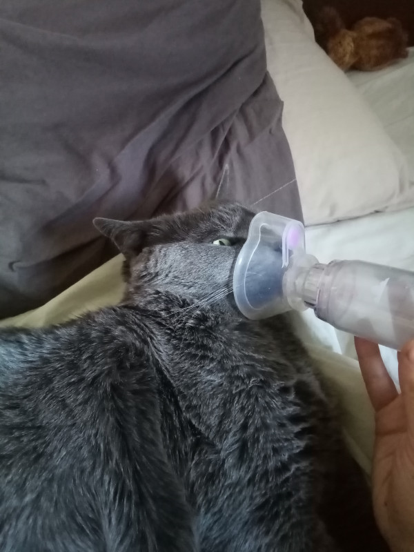 Il a de gros problème respiratoire et je dois lui donner un anti inflammatoire matin et soir qui ressemble à la ventoline.