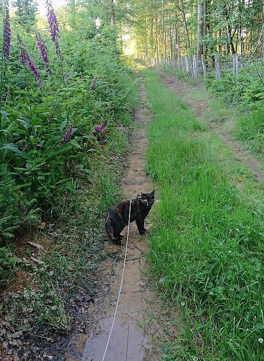 Six mois plus tard, j'adopte un second petit roumain. Je le ramène à la maison comme si de rien n'était, étant donné qu'il avait déjà rencontré Prunelle auparavant. Et là, gros pétage de plomb de Prunelle qui, le soir même, se met à prédater +++ les chats ! Rodin étant plutôt téméraire, et Prunelle faisant 4x sa taille, je décide de les séparer en enfermant les chats dans mon bureau. Quelques jours plus tard, je mets une barrière pour bébé à la place de la porte afin que chats et chiens puissent se sentir. Dès qu'elle entendait un mouvement provenant du bureau, Prunelle a "chargé" vers la barrière, en grognant, aboyant ... Peu rassurés, les chats n'ont pas essayé de passer au-dessus de cette barrière pendant plusieurs jours. Un soir, je profite que Prunelle soit en balade avec mon ex pour "présenter" Lewyn, qui est très curieux et pas du tout agressif, aux chats. Les deux se sentent, et je n'ai pas eu le temps de dire ouf que Rodin a attaqué Lewyn qui a pris la fuite en se faisant pipi dessus, puis m'a attaqué et m'a bien lacéré les jambes. C'est la première fois que je me faisais attaquer par un chat, je peux vous dire que j'ai eu très peur. Suite à cet incident, on a enlevé la barrière et fermé la porte. Depuis, Prunelle est sous traitement (fluoxetine) et ne réagit plus devant la porte du bureau. Cela fait donc 8 mois que les chats sont enfermés dans le bureau, et depuis quelques temps, Rodin me fait pipi partout ... Il a commencé sur les tapis de litière. Puis, sur mon sac à dos du boulot (heureusement, l'ordinateur n'était pas dedans). Et ce matin, il a pissé sur la balayette ...