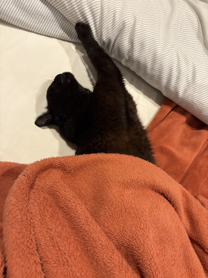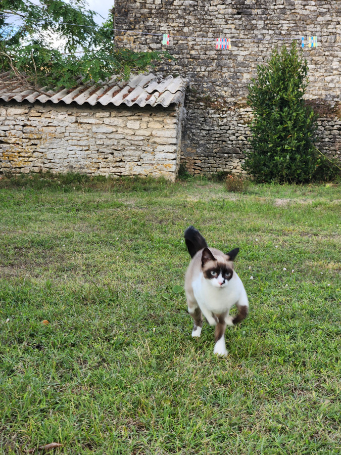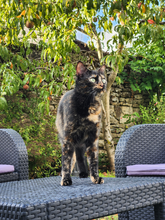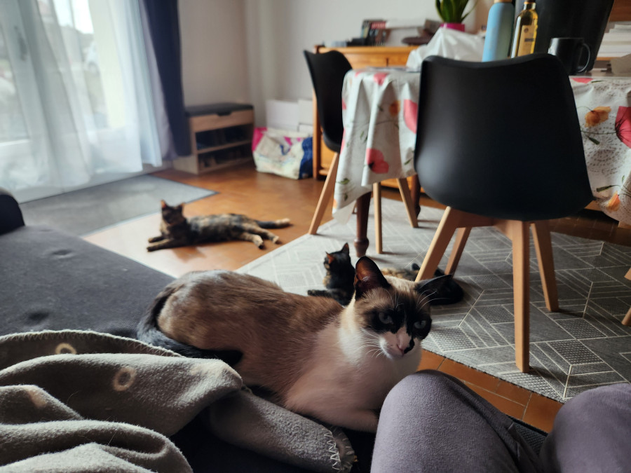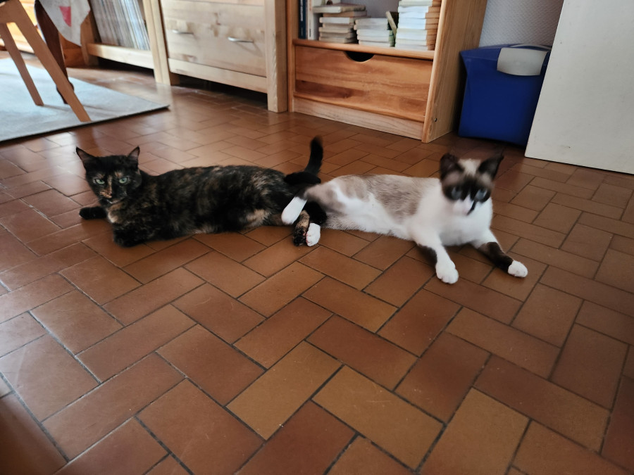 Ça fait 2 fois qu’elle lui arrache une touffe de poils. Enfin, je suppose que c’est elle. Hier soir, Mimine n’avait qu’une zone râpée, je les ai entendues se battre, et ce matin Mimine avait un deuxième scalp.