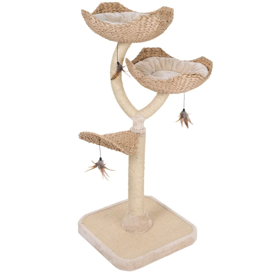 Je voulais aussi un arbre à chat sympa et s'intégrant bien à mon intérieur (nature, japonisant), j'ai choisi celui ci et sans regret. Il a deux ans et demi, et survit très bien