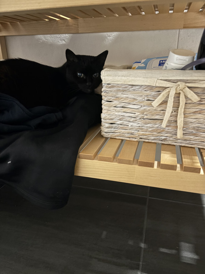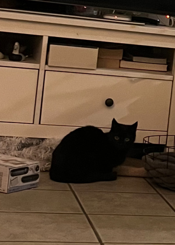 Et son frère (ou sœur), un sauvageon. Enfin plutôt un timide car il sort quand même de sa cachette. Je peux le caresser tout de même quand je lui amène à manger dans sa cachette.