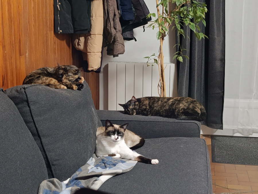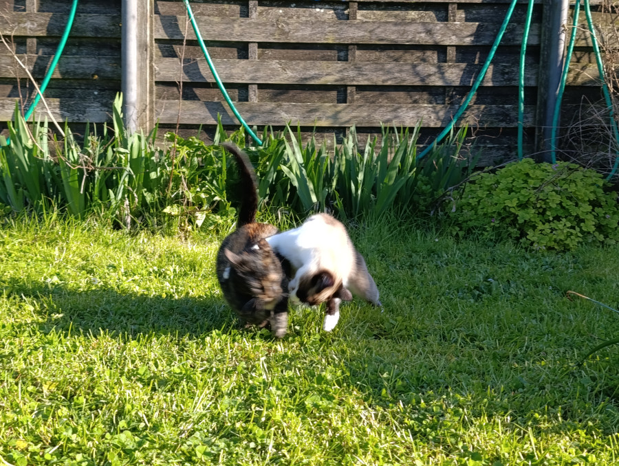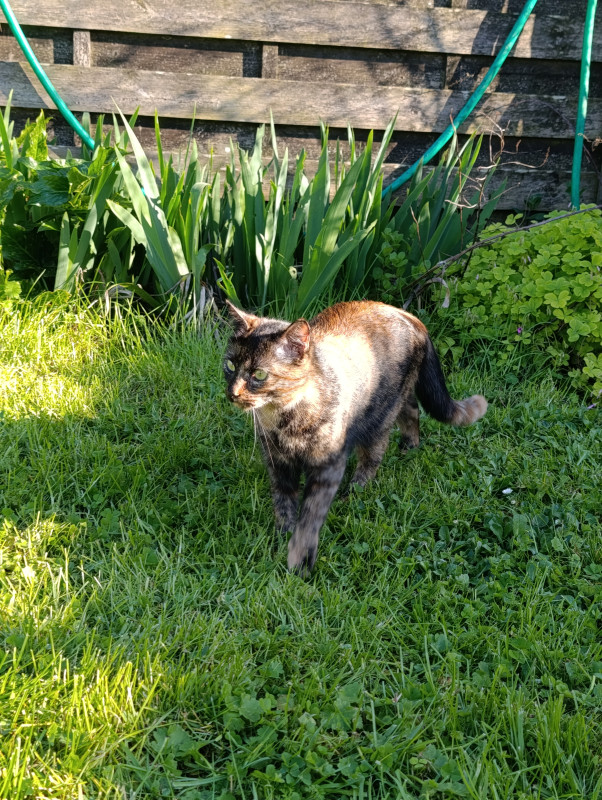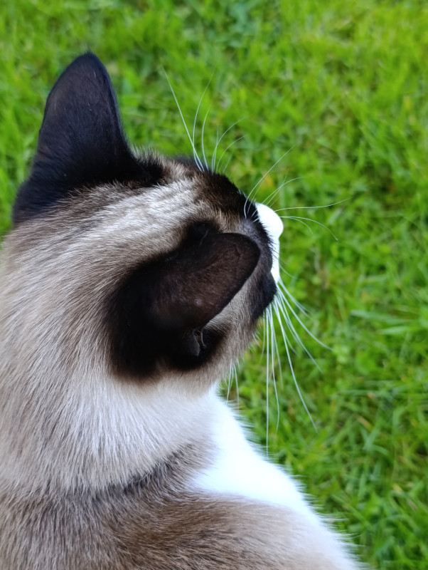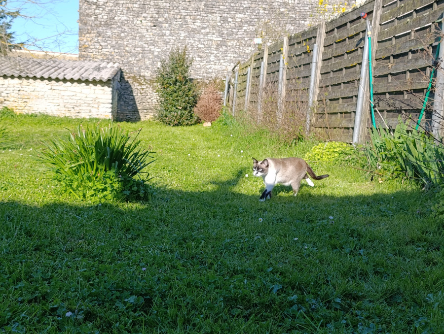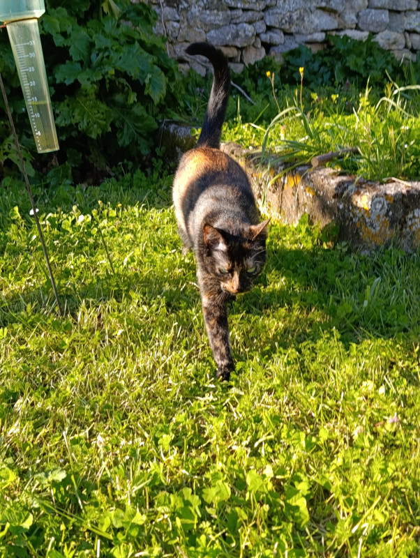 Position un peu bizarre de Lisaya, elle était en train de se nettoyer entre les doigts de pied de la patte arrière juste avant que je prenne la photo