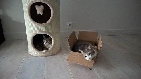 Forcément dès que l'adoptant et la dame de l'assoc' sont venus, il s'est planqué sous le lit et ne voulait pas sortir :(. Des gens, des voix qu'il ne connait pas, il faisait carrément son timide. On pensait que c'était mal parti ... Puis finalement, on l'a "forcé", je l'ai pris sur le lit avec moi, en le tenant au début pour que le gars venait pour la visite puisse au moins voir à quoi il ressemble XD, puis il s'est détendu, grosse séance calin après etc, et finalement l'adoptant à craqué :). Je suis super contente pour Gift, je suis sure qu'il fera un super chat de compagnie après quelques jours d'adaptation !