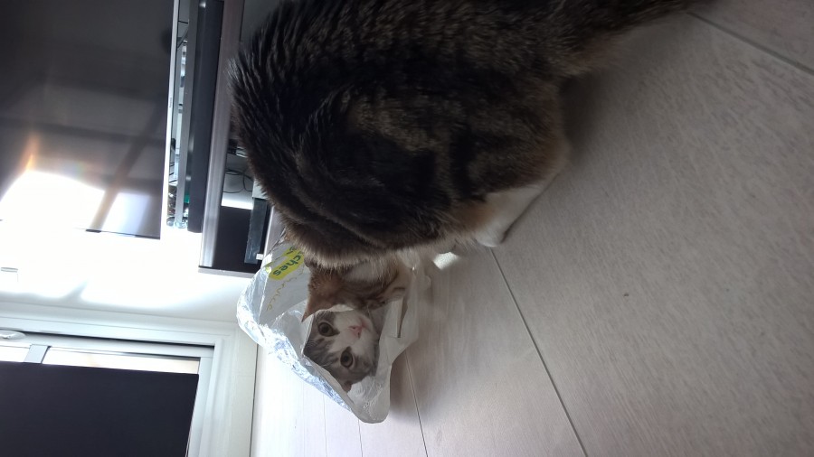 Et pendant ce temps là, mango qui s'est découvert une passion pour mon bonnet avec Pompom