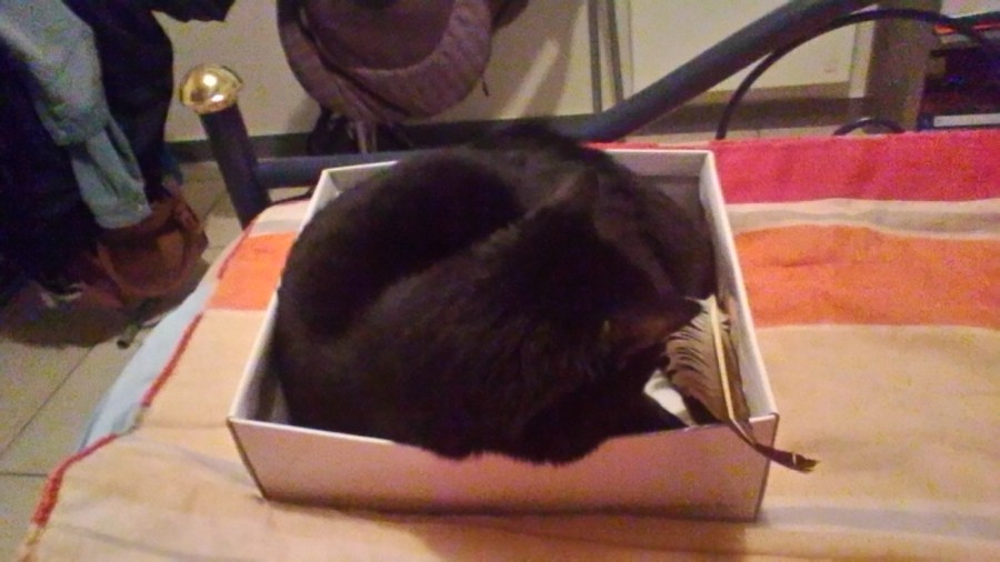 Ah exact ! Il saute dans les plastiques des bouteilles quand il n'y en reste qu'une ou deux. Sinon, il se cache dedans. Après, son amour de toujours restera mon sac à dos...