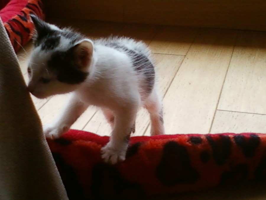 On est rentré de vacances mercredi soir donc pendant une semaine il n'a vu personne (une copine passait nourrir et changer la litière mais il restait planqué). En une semaine sans le voir, il a encore grandit ! (mais il grandit en longueur, c'est bizarre ^^)