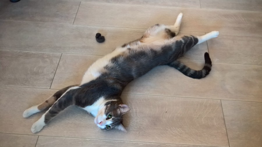 Zara dite " la dalleuse " mange h24 , miaule h24 et dort h24 . Passion : escaladé les radiateurs , Sisi c'est possible .