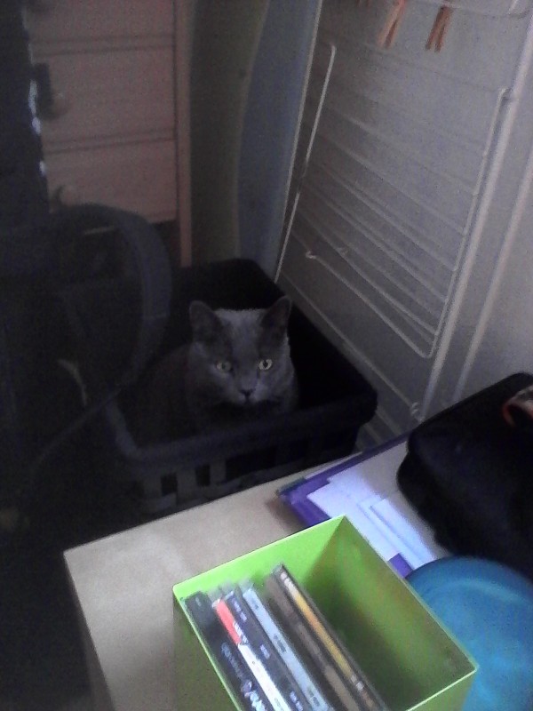 En fait je voulais faire ça au départ, mais c'est pas parce que je le vire qu'il arrête de miauler (pourtant pas bien fort, mais moi ça me met à cran).