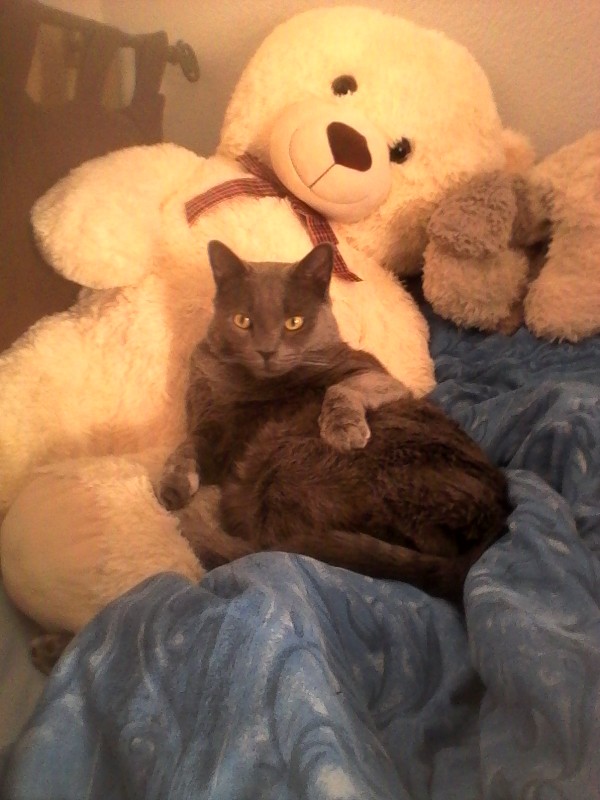 Hoho les matoux trop mignon sur leur plaid ou avec l'ours en peluche ^^