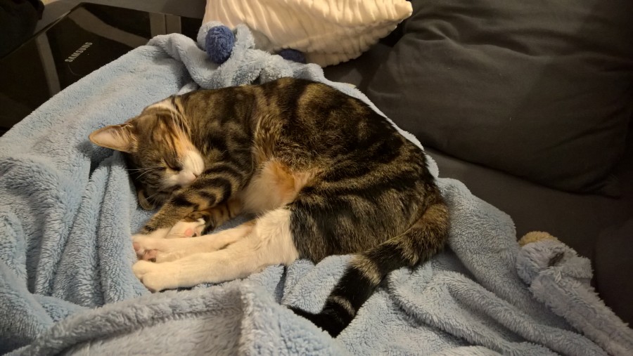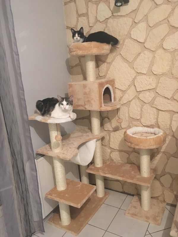 Avant il était entre la tv et la porte fenêtre, là il est en la porte fenêtre et le poele mais pile en face du couloir ... et elle a + de crises de folies à sauter dessus (se louper parfois) et y dort plus souvent aussi.