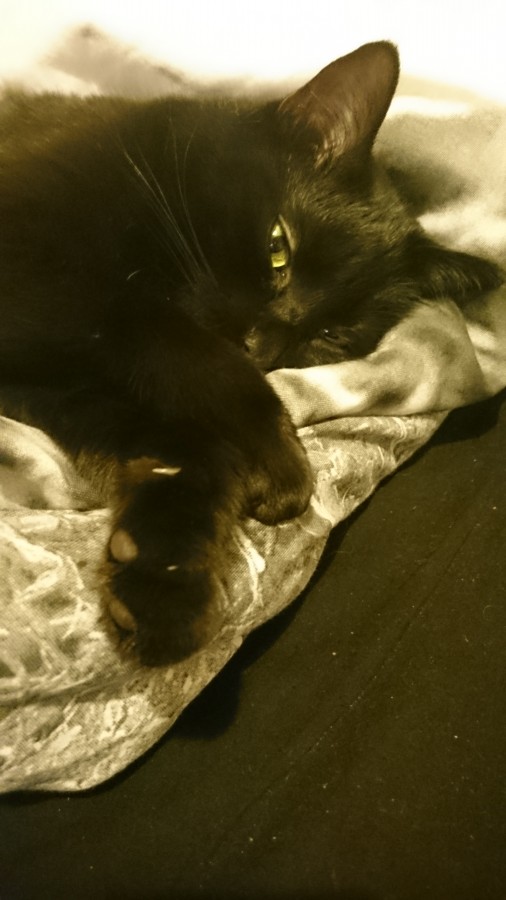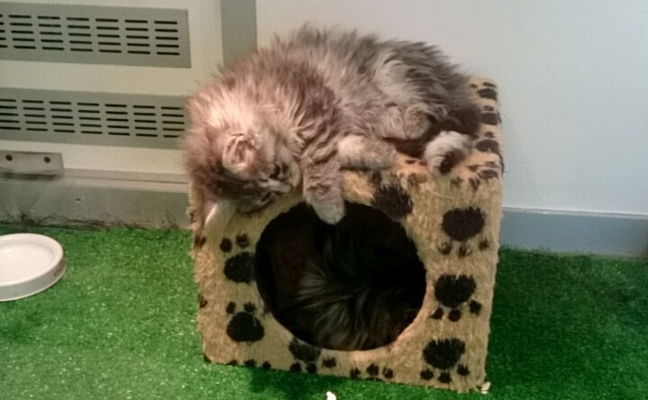 Et Issia est toujours autant en recherche de chaleur(elle s'est débrourillée toute seule!)