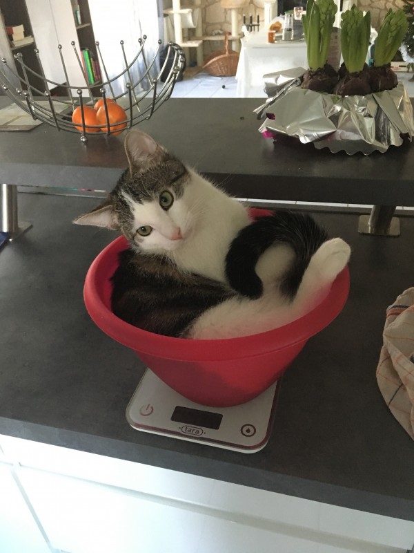 Au début, c'était vraiment dur. Et là, depuis deux-trois jours, elle a bien le réflexe de chercher (bon, en me miaulant dessus au cas où je lui ferais une feinte). Je suis contente que ça fonctionne. Quand elle aura vraiment le réflex, je pourrais m'amuser à le cacher un peu mieux. Ouais, je suis méchante avec elle.
