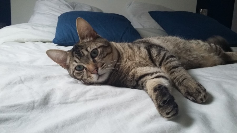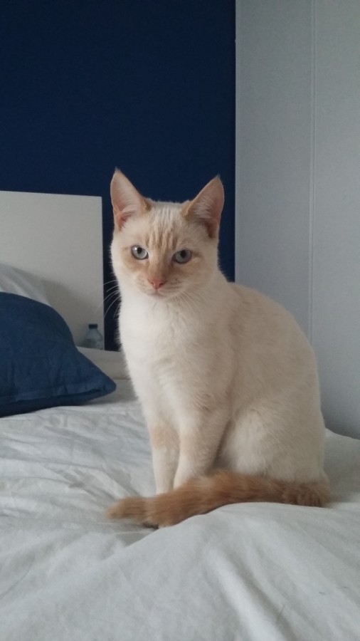 Beka fait assez peu de miaou, c'est plutôt des mi ou mia, puis des roucoulement digne d'un pigeon (qui sait s'il lui répondrait pas d'ailleurs !!)