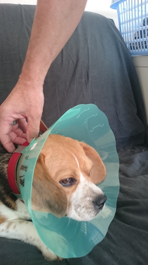 Sinon je me disais une collerette quand c'est croûteux comme cela il n'y touche plus mais cela voudrait dire privé de dehors.. ( Et la c'est la crise pour lui)