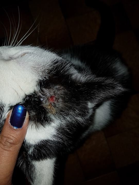 Cela fait ( 1mois et demi je dirais) que Boudin à un trou sur la tête ( suite à une baston ><). Du coup il y avait un truc marron qui sortait bien bien j'ai désinfecté mais le soucis c'est que MONSIEUR se gratte quand c'est en voie de guérison!