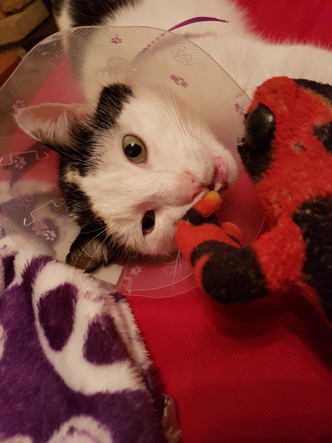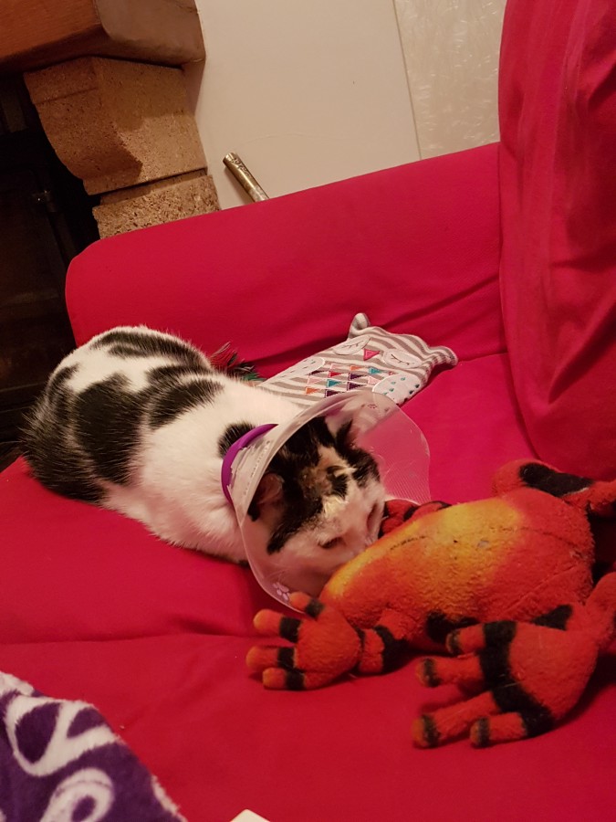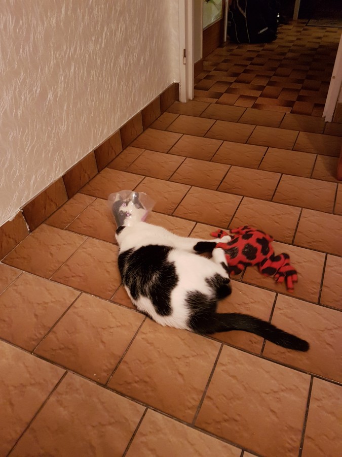 J'imagine bien avec la chaussette xD! Là l'antibiotique à l'air de le mettre en mode hs :/ il regarde le vide et attend. :)