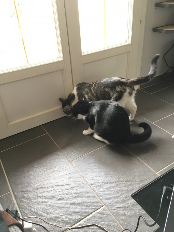 En rentrant c'était des roucoulements à tout va, des "mi mi", la queue qui frétille et des câlins autant à Izia qu'à moi, à se frotter, nous suivre et tout ^^