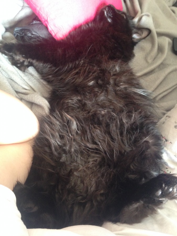 Je suis rentré tard hier soir, bon j'avais Izia avec moi au boulot donc elle n'était pas seule, mais du coup c'est Beka qui est resté seule.