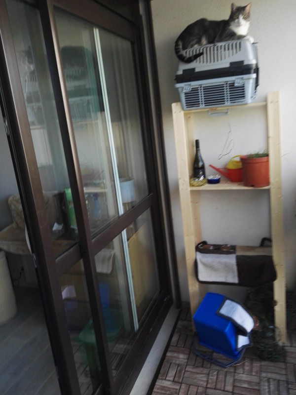 Je me lève ce matin, je vois que Mango, j'appelle Louka, j'entends pleurer... ?! Et là... Je vois qui, tout en haut de l'étagère, sur le balcon, dans la caisse de transport ? Louka, qui du coup ne pouvait pas redescendre.... ce con