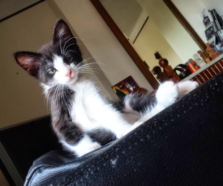 Des ptites nouvelles du chaton tout plein de puces ! Au sujet de ces dernières il n'y en a plus beaucoup, il se gratte beaucoup moins. Mais par contre monsieur est en pleine forme, il court et saute de partout assez marrant à voir Voici quelques photos