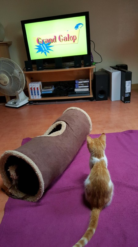 Petit photo de mon microbe qui grandit, grossit bien et adore regarder la télé !