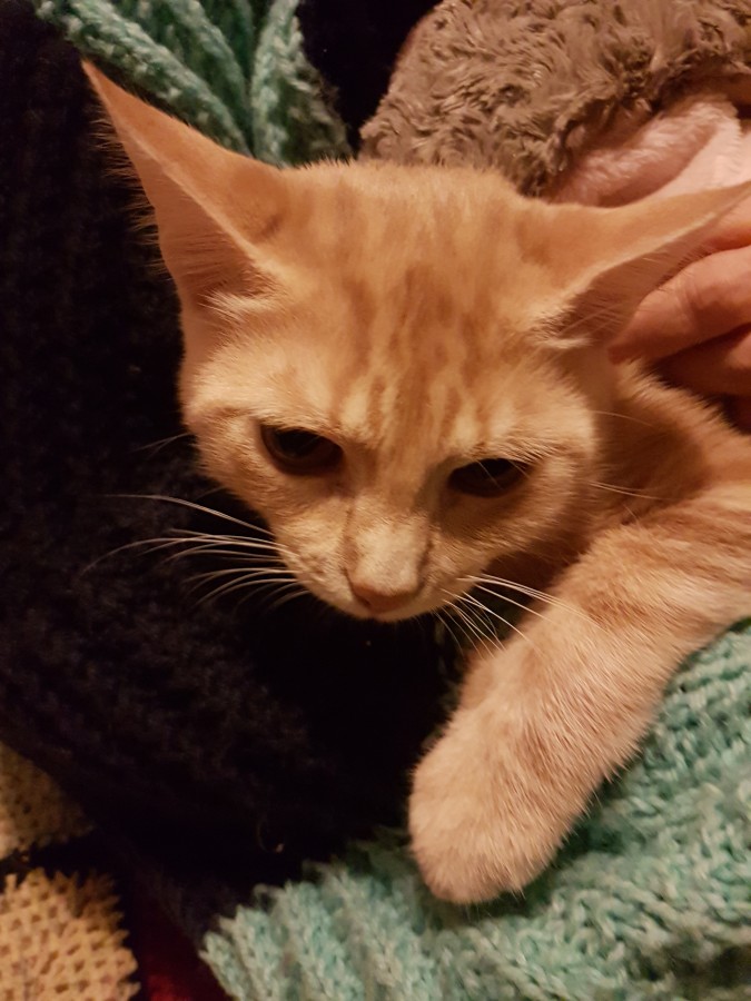 : Ce matin grosse guerre pour pouvoir lui donné les 2 seringues >< j'ai du m'y prendre a 3 pauses avec jambon pour qu'il revienne sinon je me bataillé pour le faire tenir entre mes bras. ( on a essayé avec mon père hier soir a deux c'est galère ^^).
