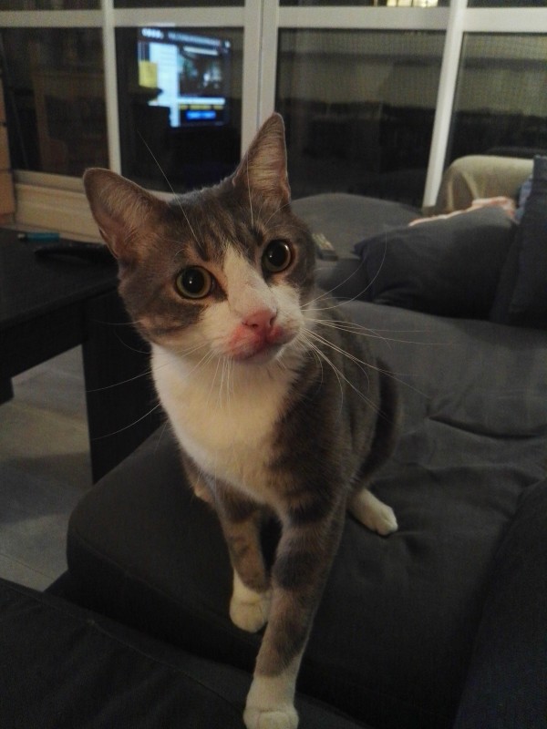 ...je sais pas trop ce qu'il a ! Et il est toujours en encore poursuivi par maestro de temps en temps dans la maison...