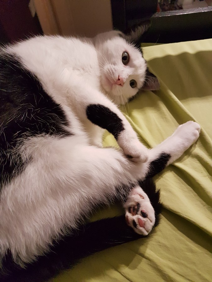 eloalves oui très bien. J'étais allongée sur le dos et Azraël était sur mon ventre. Au debut il ne voulait pas rester mais ma mère l'a caressé et ensuite il etait intrigué par ce qu'on lui faisait.