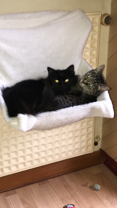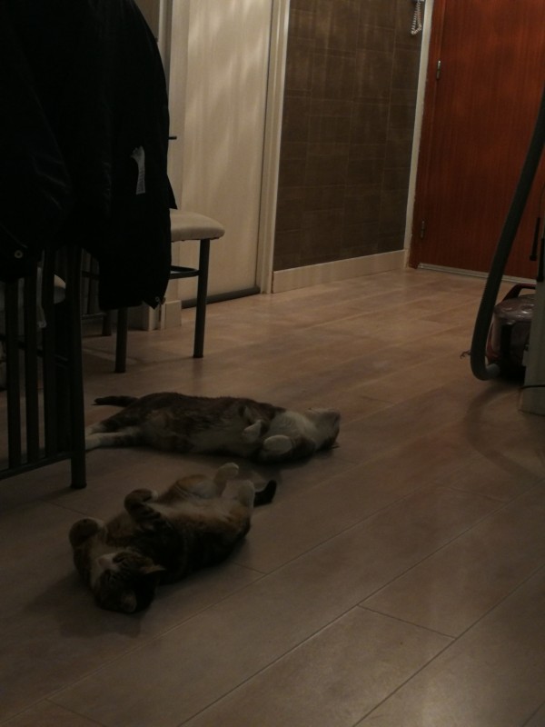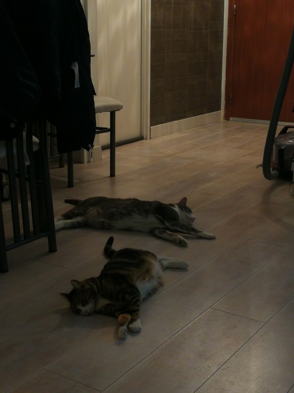 Maintenant ils ne dorment plus trop ensemble, parfois quand Nala dort sur un truc, Félix urine dessus. Parfois pas (c’est le gros lot).