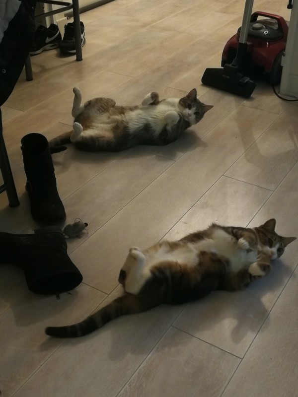 Ce qui me plaît moyen c'est que ça fait un bon moment qu'elle a les pattes assez sales, je mettais ça sur le compte du temps particulièrement humide et de ses sorties dehors et n'ai jamais fait un lien avec un problème éventuel ... Donc j'espère que ce n'est pas un bobo ou un abcès qu'on aurait pas vu